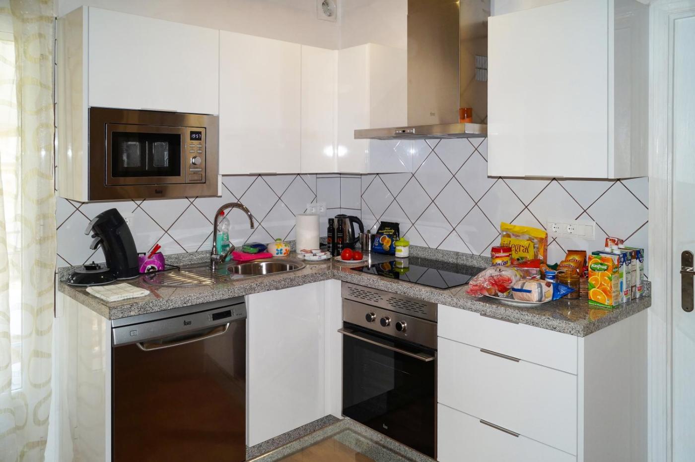 Two-Bedroom Apartment. This house has a shared garden with a pool and swings. The house has a double bedroom, a twin bedroom and a lounge with a dining table and flat-screen TV. The kitchenette has a breakfast bar, a hob, oven and microwave, as well as a dishwasher and washing machine. Free WiFi is available throughout most of the house. There is also a first-floor balcony with a table and chairs overlooking the pool area,you can enjoy a barbecue. ;